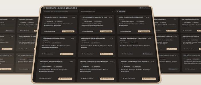 Arsenal de flashcards prontos que conta com 98 decks, 4300 flashcards prontos para você usar.